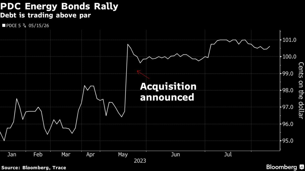 Under the terms of PDC’s bonds, the Chevron deal didn’t trigger the change of control clause because the debt wasn’t downgraded, according to materials from the Credit Roundtable.