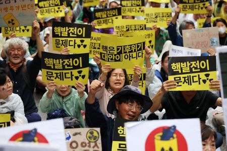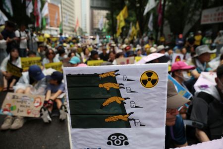 SEOUL (Reuters) – Hundreds of South Korean activists gathered in central Seoul on Saturday to protest against Japan’s plan to release treated radioactive water from the tsunami-wrecked Fukushima nuclear power plant into the ocean.