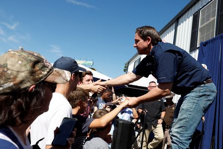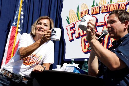 DES MOINES, Iowa (Reuters) – Republican presidential rivals Donald Trump and Ron DeSantis were holding competing events in the early nominating state of Iowa on Saturday, at a time when the former president overwhelmingly dominates opinion polls and the Florida governor is scrambling to reset his troubled campaign.