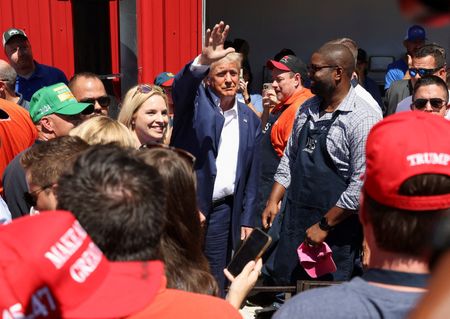 He later made a speech inside a fairground bar, where he boasted about his current lead. “We’re way up in the polls,” Trump said.