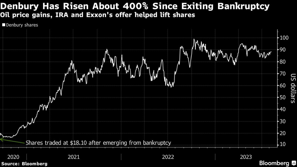 Denbury’s stock rose with oil prices through 2022, and shortly after the IRA passed in August, Bloomberg reported that the company began working with advisers on a potential sale.