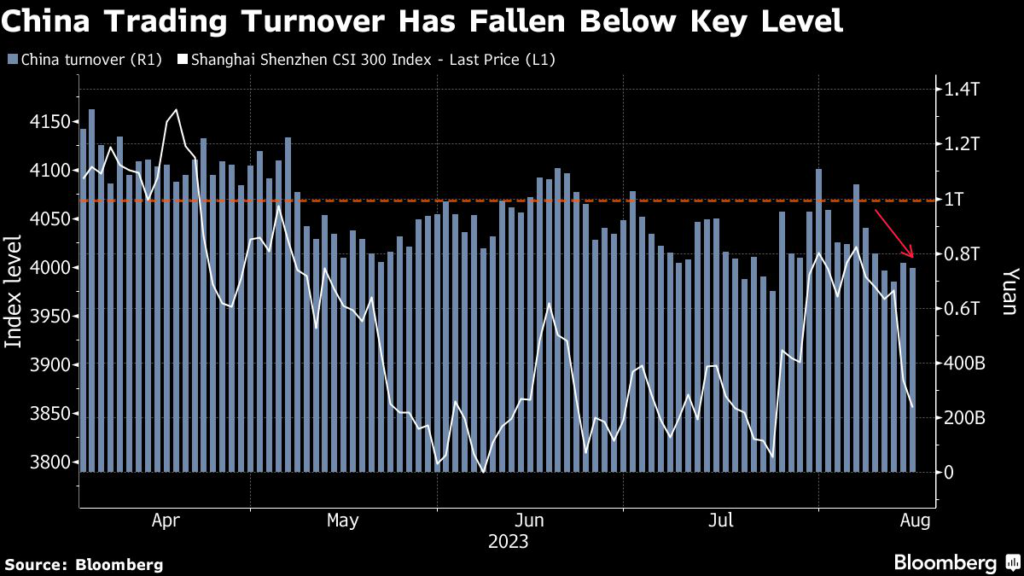 (Bloomberg) — Chinese authorities are considering cutting the stamp duty on stock trades for the first time since 2008, people familiar with the matter said, in what would be a major attempt to revive confidence in the world’s second-largest equity market.