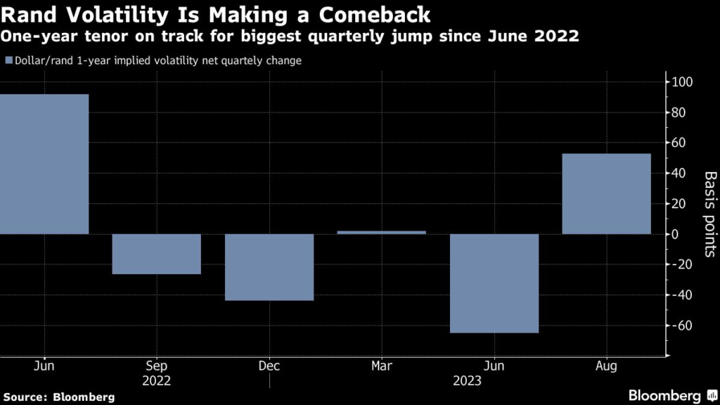 (Bloomberg) — Rand traders are starting to look to next year’s South African election, betting that it will bring with it whispsaws in the currency.