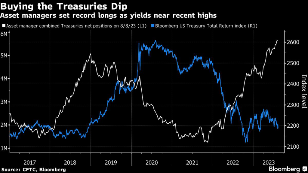 said last week, citing data from EPFR Global. That puts the funds on pace for an annualized record of $206 billion, BofA said. Asset managers also boosted their overall long positions in Treasury futures to a fresh record in the week to Aug.