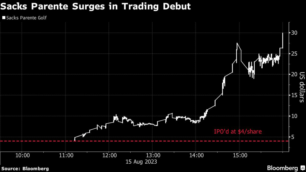 Sacks Parente Golf Inc. shares skyrocketed 624% in its first day of trading, notching the best initial public offering debut on a US exchange this year.