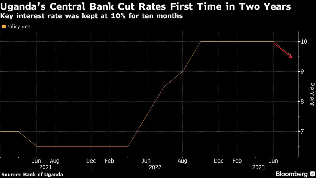 Speaking in an online briefing after the bank’s first rate cut since June 2021, Deputy Governor Michael Atingi-Ego said officials would do “what it takes to stabilize the exchange rate.” The shilling has dropped around 3% since the World Bank said it would suspend new funding because the legislation signed into law in May contradicts its values.