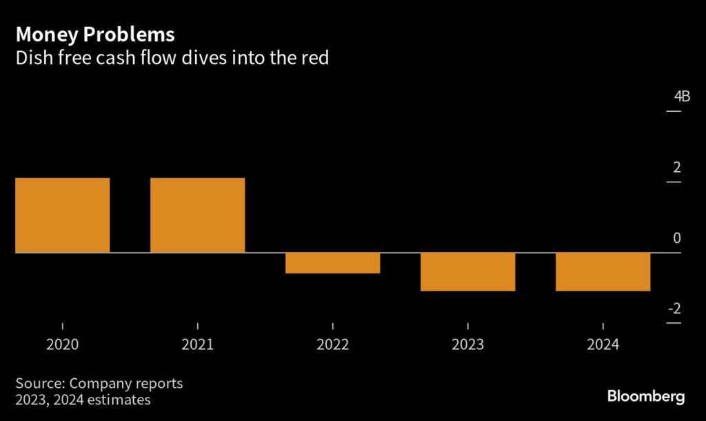 But the business isn’t generating enough cash to pay for that. Punishingly high interest rates, meanwhile, have slammed the door on the credit market. Dish also had $9.5 billion in distressed debt outstanding as of Aug.