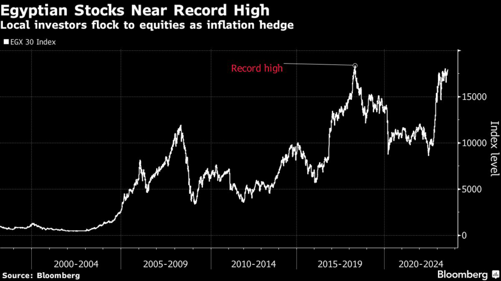 (Bloomberg) — Egypt’s stock market is approaching an all-time high as local investors rush to protect their savings from rampant inflation.