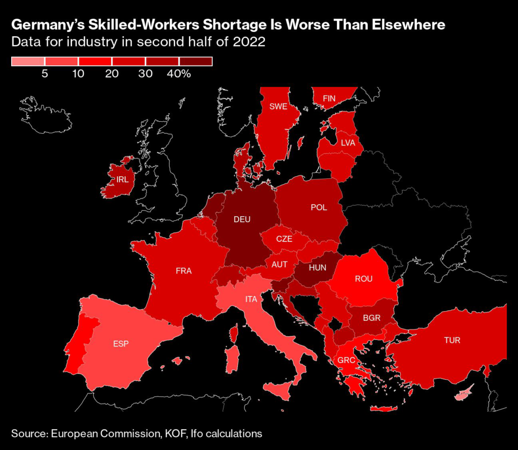 A dearth of skilled labor that’s restraining German output is getting worse.