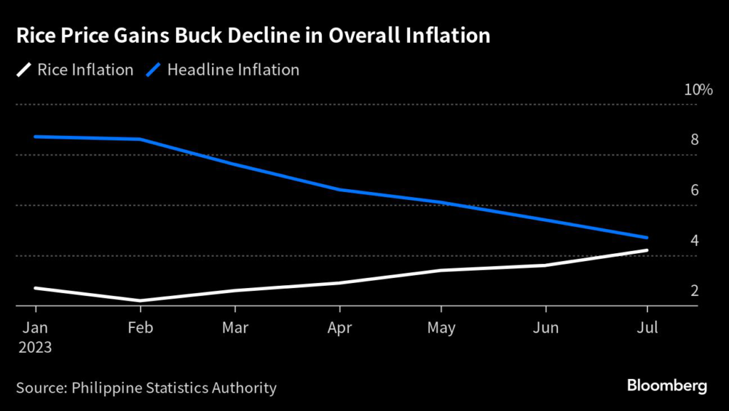 Rice, the staple grain that makes up 9% of the local consumer price basket, has been posting faster price gains in the past six months.