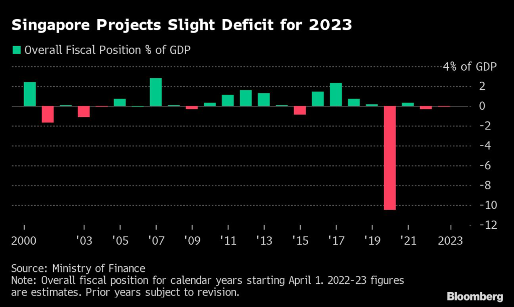 The city-state has budgeted for another year of slim deficit in 2023, amid measures to blunt inflationary pressures including higher subsidies to lower-income households to offset an increase in goods-and-services tax.