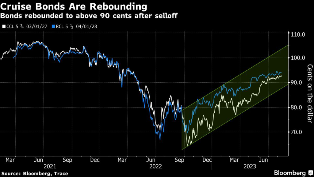 (Bloomberg) — The leisure industry’s junk bonds are soaring as vacation-ready spenders board passenger ships, sparking a recovery for debt-laden cruiseliners.