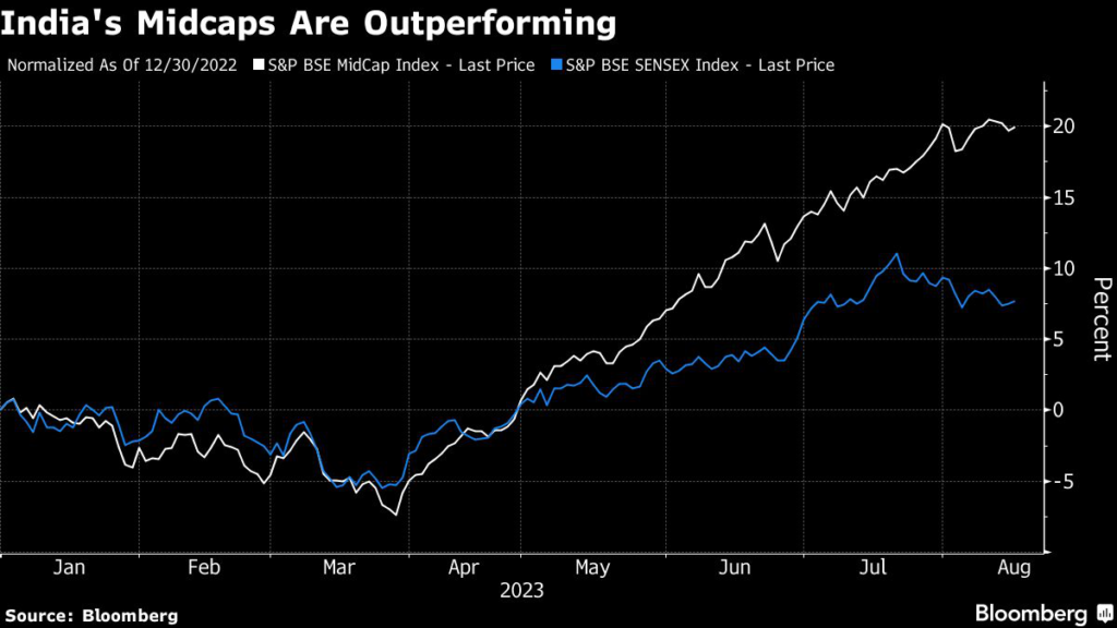The S&P BSE MidCap Index has risen more than 20% this year, surpassing a 7.4% gain in India’s equity benchmark.