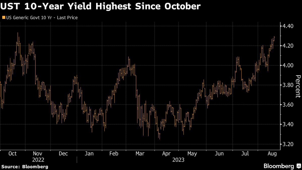 That took it to around three basis points away from last October’s peak, which was the highest since 2007. Treasuries have been a key driver of the global debt selloff as resilient US economic data dashed investor optimism that central banks will soon halt or start reversing interest-rate hikes.