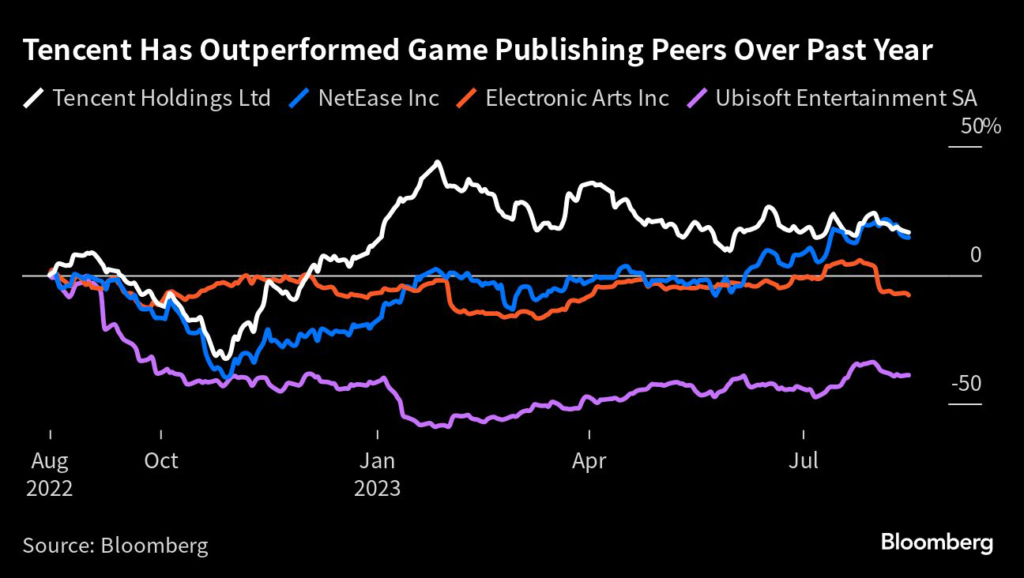 Tencent’s international gaming revenue rose in the quarter while domestic sales plateaued, reflecting healthier spending abroad.