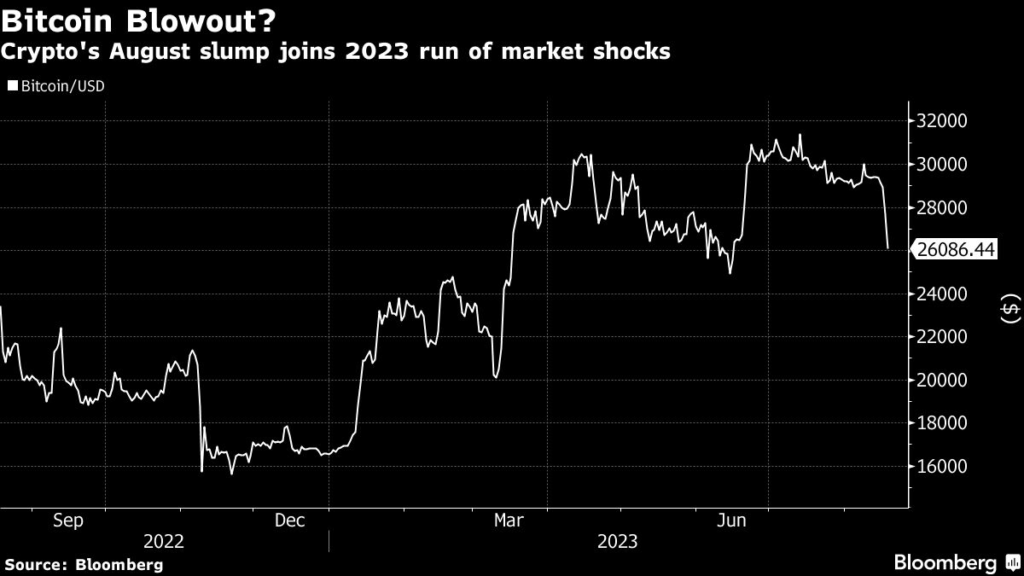 (Bloomberg) — Bitcoin has had a sleepy summer. This week, it was shaken awake.