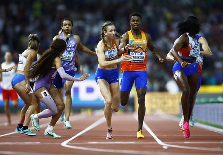 BUDAPEST (Reuters) -The United States won a dramatic World Championship gold with a world record in the mixed 4×400 metres relay on Saturday as Femke Bol fell five metres from the line just as it looked as if she was going to bring the Netherlands home for gold.
