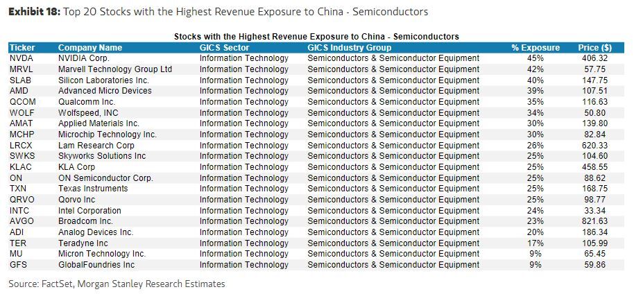 and Qualcomm Inc. generate a large chunk of their revenue from China, according to data compiled by Morgan Stanley. The sector has taken a hit from an escalation in the Sino-US tech war this year, with export controls exacerbating supply chain woes given that much of the world’s electronics and component systems come through Chinese factories.