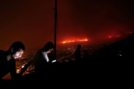 TENERIFE, Canary Islands, Spain (Reuters) – A wildfire on the Spanish island of Tenerife that has forced thousands of people to flee their homes was spreading and remained out of control late on Saturday, with hot, dry and windy weather hampering efforts to contain the blaze.