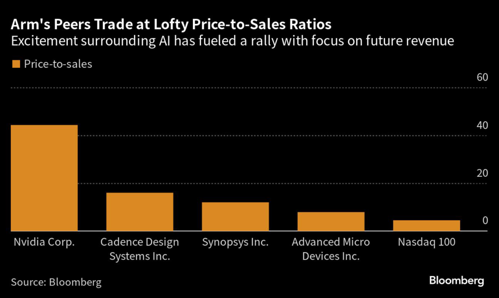 Those kinds of levels are high compared with the valuations that investors have awarded smaller Arm competitors like Synopsys Inc.