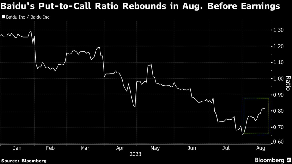 Without a stronger demand pull or updates to its AI project, the outlook for its shares is cloudy at best. Options traders are already on board. Baidu’s put-to-call ratio based on option interest, an indicator of relative bearishness over a stock, has increased this month.