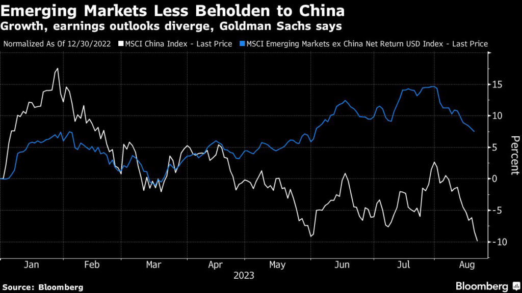 For the past three decades, China’s economy has been a dominant factor in emerging markets for economic and corporate growth. Goldman Sachs Group Inc. strategists say that’s now changing.
