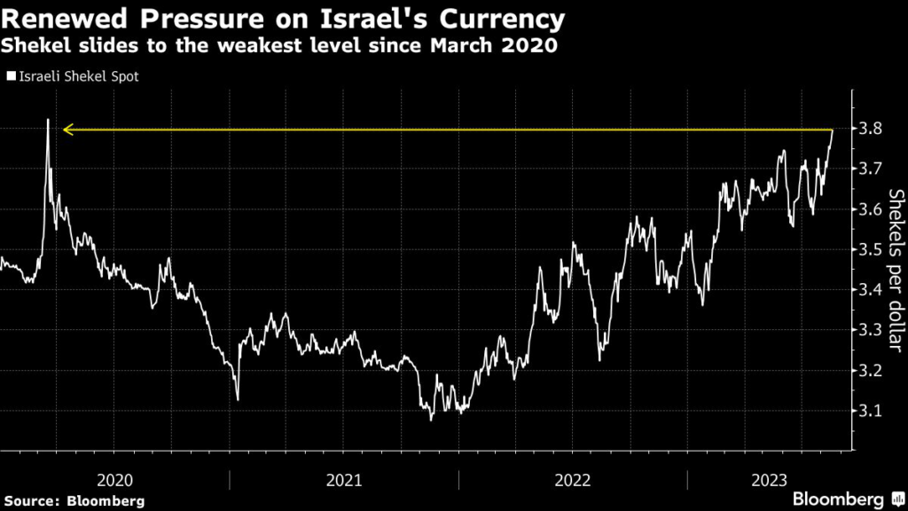 Since the demonstrations took off, the shekel has depreciated to the weakest in more than three years in one of the worst performances among a basket of expanded major currencies.