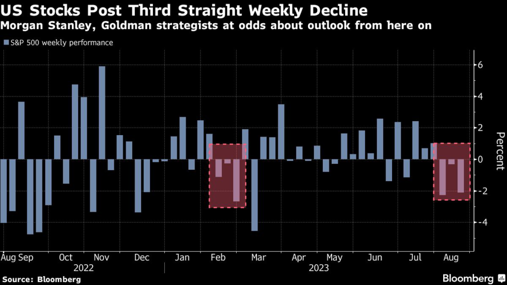 US stocks posted their third weekly decline in a row on Friday — the longest streak since February — as signs of resilience in the economy bolstered wagers the Federal Reserve would keep interest rates higher for longer.