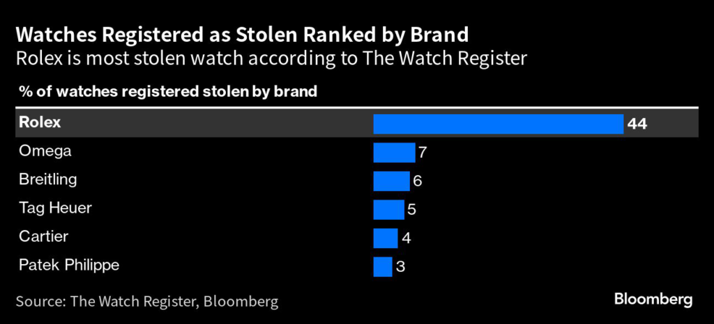 (Bloomberg) — Luxury watches worth more than £1 billion ($1.3 billion) have been reported as stolen or missing, with a surge in the number of thefts last year.