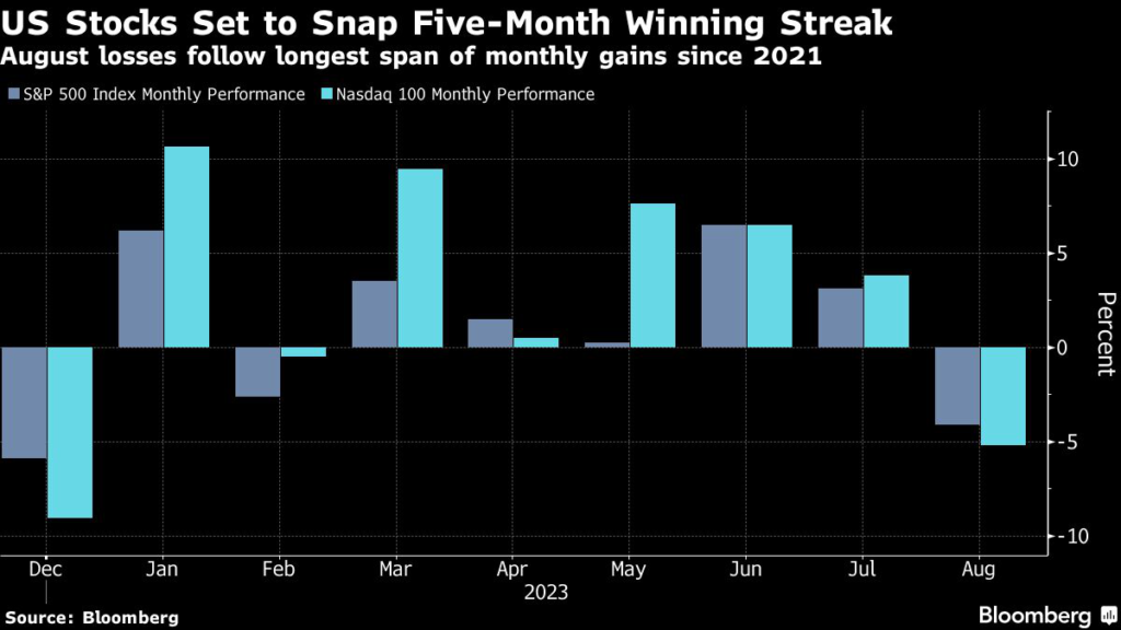 The stock market’s pullback this month ended a five-month winning streak for US equities, when prices rallied strongly on optimism that the Federal Reserve was poised to finish its aggressive rate hiking without derailing the economy’s growth.