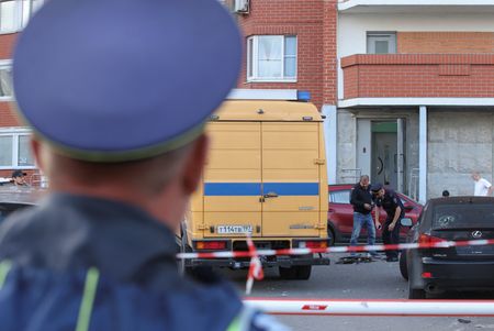 Police had sealed off the scene and investigators from Russia’s FSB security service collected what looked like drone fragments.