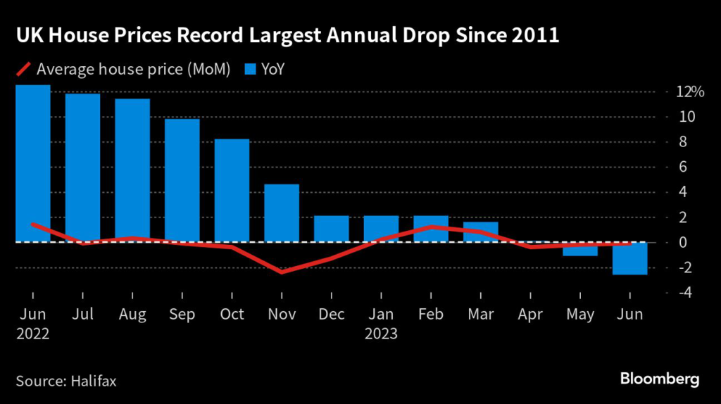 Halifax said prices have fallen 2.5% to £286,276 ($364,440) since the peak in June 2022.