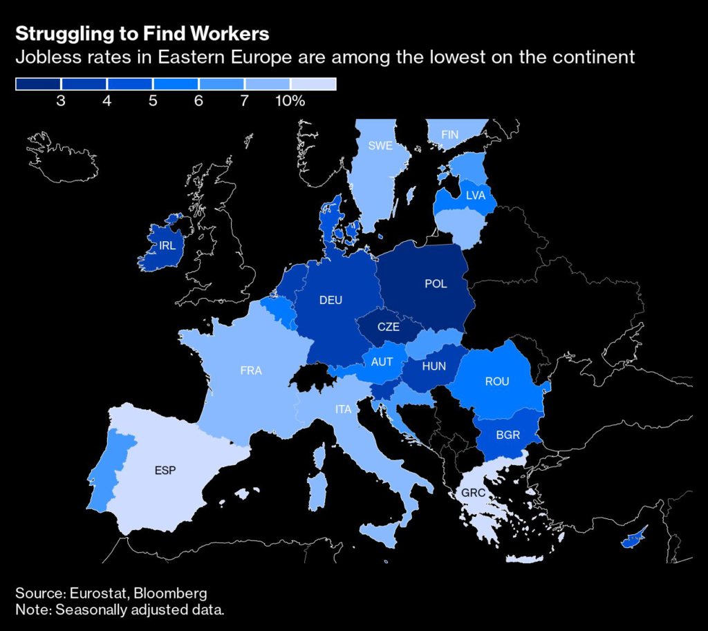 But most eastern economies in the EU have jobless rates of 5% or lower, and at least 670,000 jobs remain unfilled across the region.