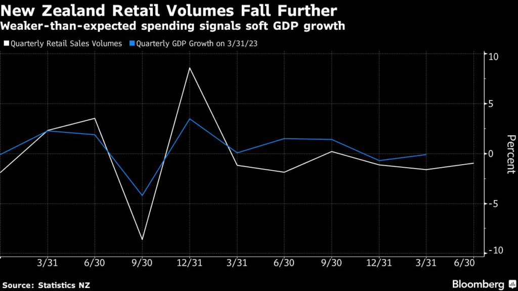 (Bloomberg) — An unexpectedly large decline in New Zealand retail sales suggests gross domestic product may be weaker than anticipated.