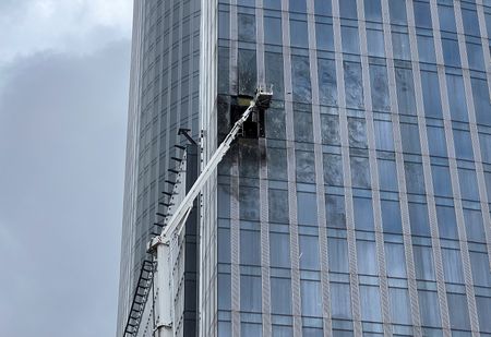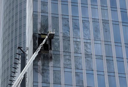 The state TASS news agency reported that glass planes on three floors of the high-rise building had been damaged.