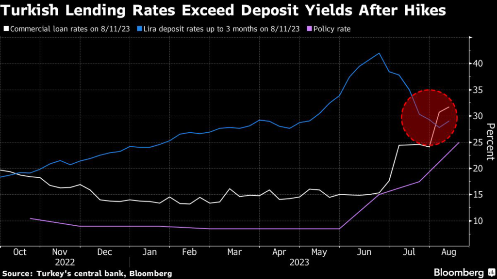 Turkey’s one week-repo rate is now at the highest since the nation started to use it as the sole benchmark.
