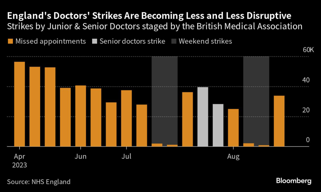 (Bloomberg) — UK doctors and rail workers are embarking on a fresh round of strikes, continuing months of damaging industrial action that’s hobbled public services and hurt the UK economy.