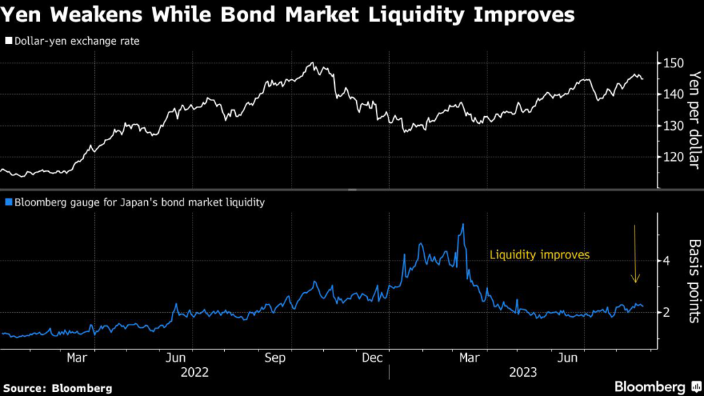 (Bloomberg) — The yen has eclipsed bond market liquidity as a potential catalyst for a further adjustment to the Bank of Japan’s monetary policy.