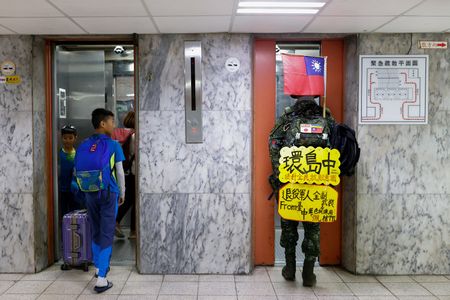 KEELUNG, Taiwan (Reuters) – Dressed in camouflage and holding a plastic rifle, Tsai Tsung-lin has been tramping around Taiwan on foot for more than a month with one message to his compatriots: be prepared for war.