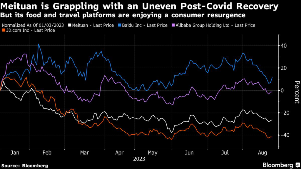 As with its peers in the internet industry, Meituan is seen as a barometer of China’s post-Covid recovery, which has proven broadly weaker than expected.