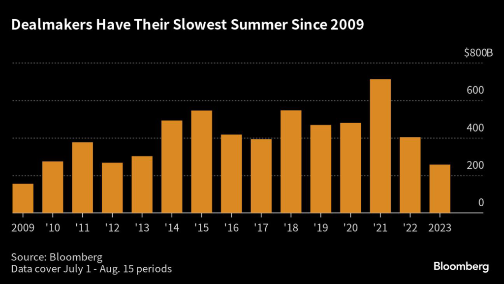 M&A activity has slumped this year in part because spiraling interest rates have made traditional PE investors nervous about leveraged acquisitions.
