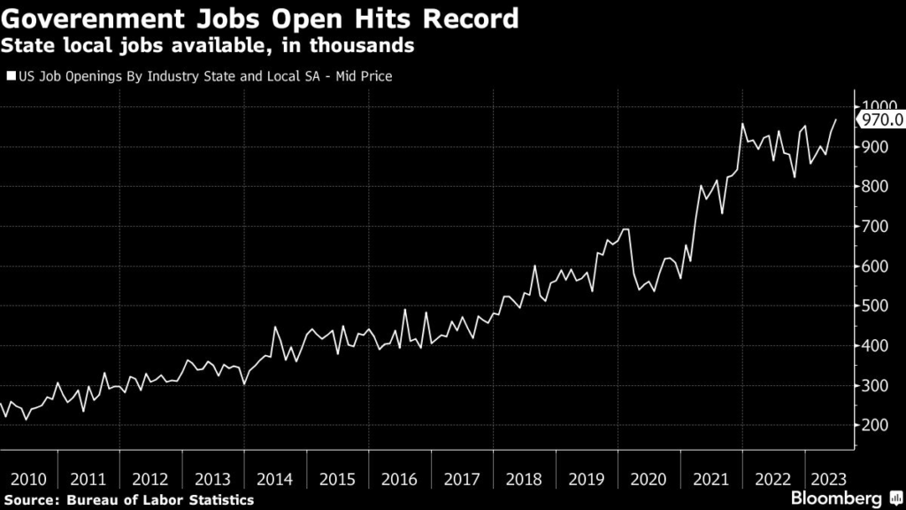 According to the Bureau of Labor Statistics, job openings in state and local government in June totaled a record 970,000.