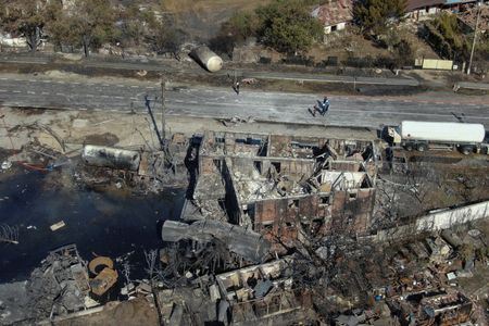 BUCHAREST (Reuters) -One person died and 57 were injured after two explosions at a liquefied petroleum gas station in the Romanian town of Crevedia near the capital Bucharest on Saturday.