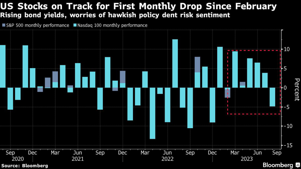 While the market’s gains stalled on concern about the scale of the run-up and further rate hikes from the Federal Reserve, the tech-heavy Nasdaq 100 Stock Index is still up some 37% this year.