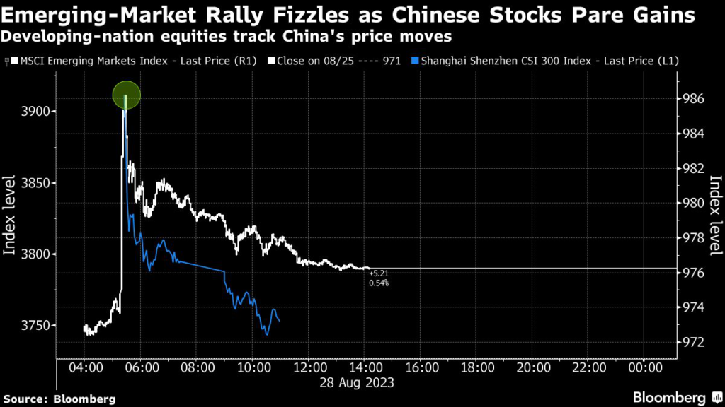 (Bloomberg) — A rally in emerging markets faded as doubts over China’s commitment to revive its faltering economy and confusion over the US Federal Reserve’s next steps kept sentiment in check.