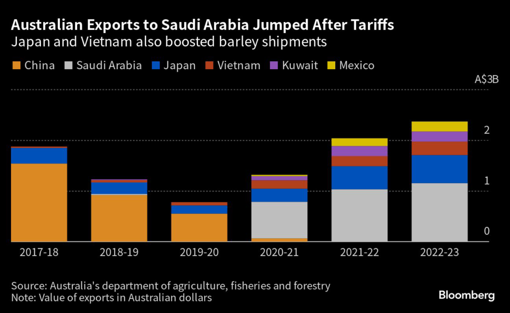 China was the biggest export destination for Australian barley prior to tariffs of more than 80% being slapped on the trade in 2020, with deteriorating relations impacting other commodities such as coal and wine.