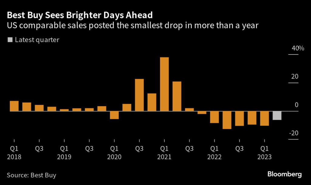 While Best Buy still has a long road to recovery, sales are at least starting to come off the bottom.
