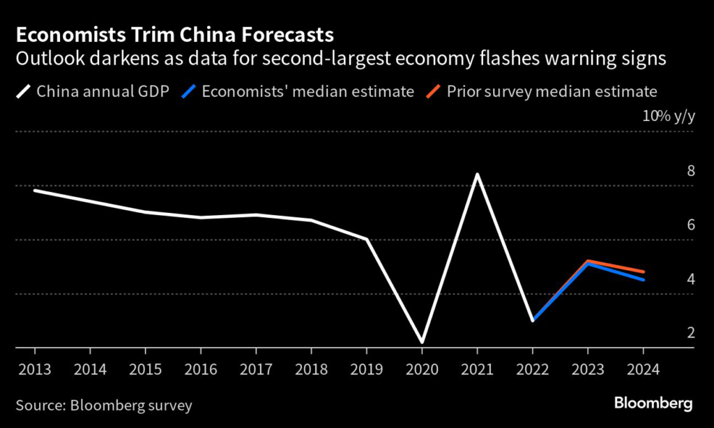 Economists now see gross domestic product expanding 5.1% in 2023 from the prior year, according to the median estimate in the latest Bloomberg survey.