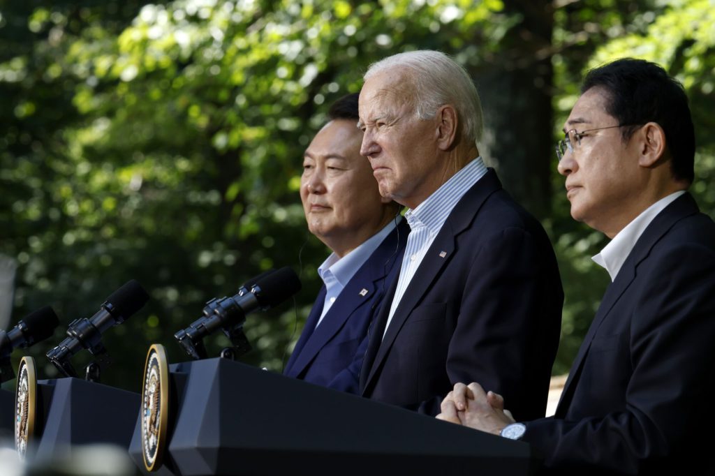 President Joe Biden, South Korean leader Yoon Suk Yeol and Japanese Prime Minister Fumio Kishida pledged at the summit in the US earlier this month to share real-time data about missile launches.