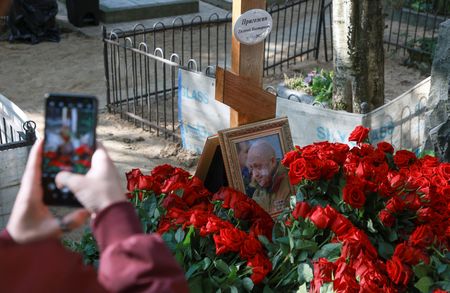 ST PETERSBURG, Russia (Reuters) -Followers of mutinous Russian mercenary Yevgeny Prigozhin laid flowers, messages and poetry at his grave on Wednesday, hailing him as a fearless warrior after he was killed along with his inner circle in a yet-to-be-explained plane crash.